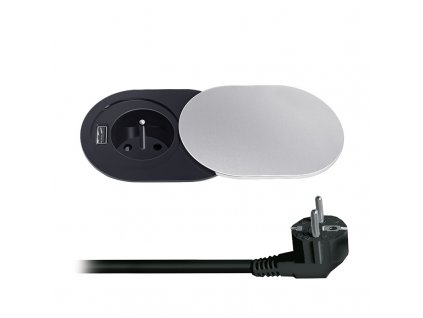 Solight 1z + 1x USB-C vestavná zásuvka, nerez ocel, EasyEject systém, prodlužovací přívod 1,5m, 3x 1,5mm2, USB 3.0A, tmavá metalická